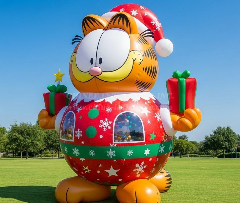 Bring instant holiday cheer to your venue with the C1-729 Christmas Cat Inflatable Cartoons from Chinee Inflatables. This oversized, jolly feline features a bright Santa hat, festive red ornament-style body with snowflakes and stars, and gift boxes in each paw—perfect for drawing attention and delighting guests of all ages. Designed as a decorative cartoon display (not for bouncing or sliding), it’s ideal for city squares, shopping centers, school lawns, theme parks, winter fairs, and photo zones.