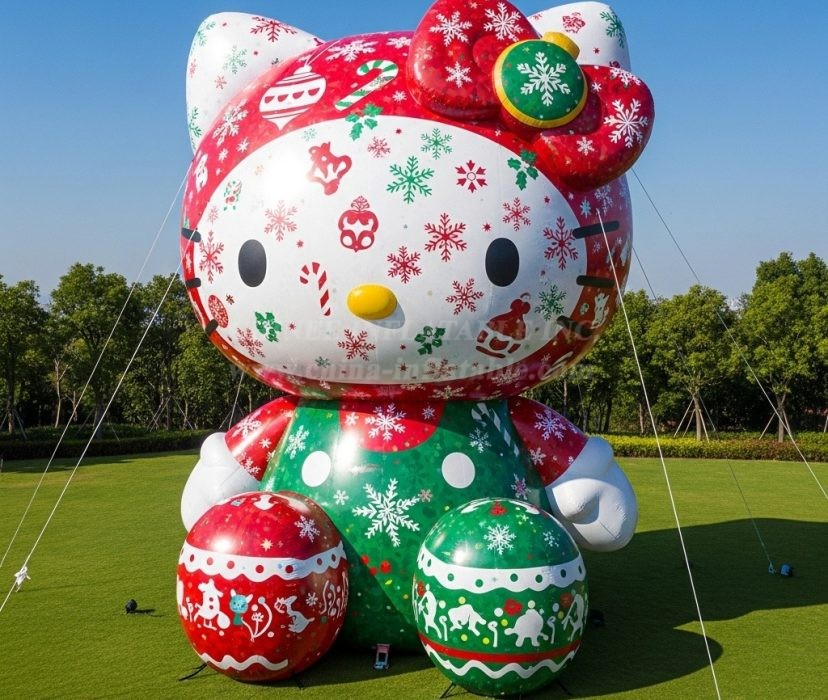 Bring festive magic to your venue with the C1-754 Hello Kitty Inflatable Cartoons by Chinee Inflatables Inc. This charming giant character features a cheerful seasonal design with red and green patterns, snowflakes, and holiday iconography, making it an instant crowd‑pleaser for Christmas markets, shopping malls, town squares, school festivals, and photo zones. As a decoration-only inflatable, it is engineered for visual impact and brandable presence rather than bouncing or sliding activities.