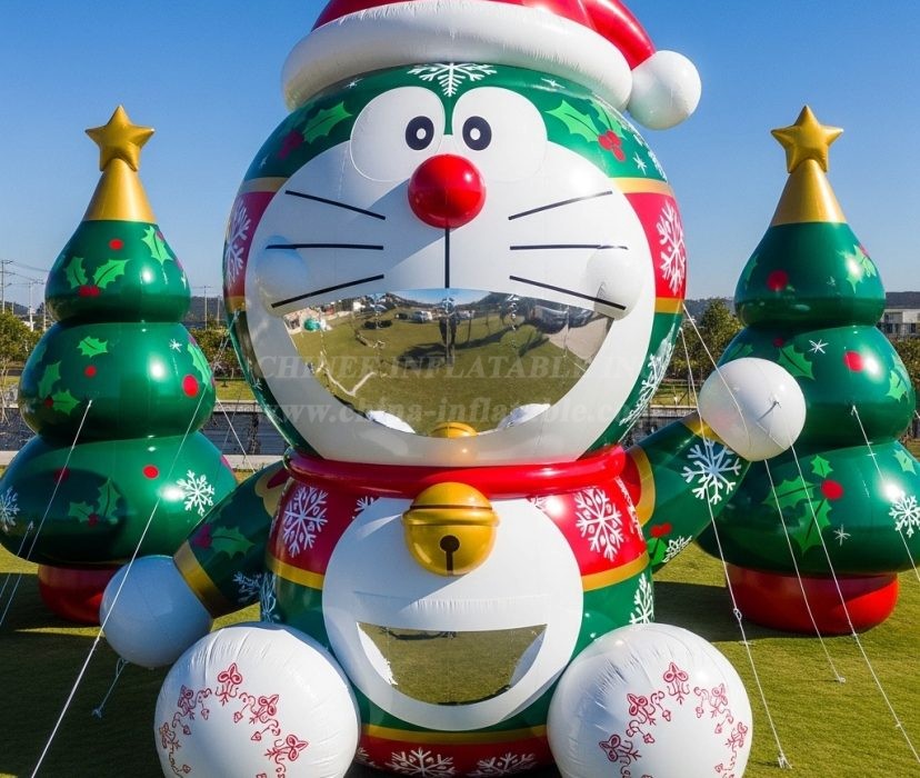 Bring festive magic to your venue with the C1-758 Doraemon Christmas Inflatable Cartoon by Chinee Inflatables. This oversized holiday character, complete with a cheerful Santa hat, bright bell, and flanking Christmas trees, creates an instant focal point for plazas, shopping malls, school yards, fairs, and winter markets. Designed as a decorative showpiece rather than a ride or slide, it delivers maximum visual impact with minimal footprint and quick setup.