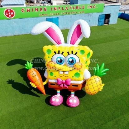 Bring joy and laughter to your Easter celebrations with the Cartoon3-003 SpongeBob Easter Bunny Inflatable Cartoon from Chinee Inflatables Inc.! This delightfully charming inflatable features everyone's favorite underwater sponge dressed as the Easter Bunny, complete with adorable white bunny ears, a pink bow tie, and colorful striped socks. SpongeBob holds a cheerful carrot and pineapple, staying true to his Bikini Bottom roots while embracing the Easter spirit.