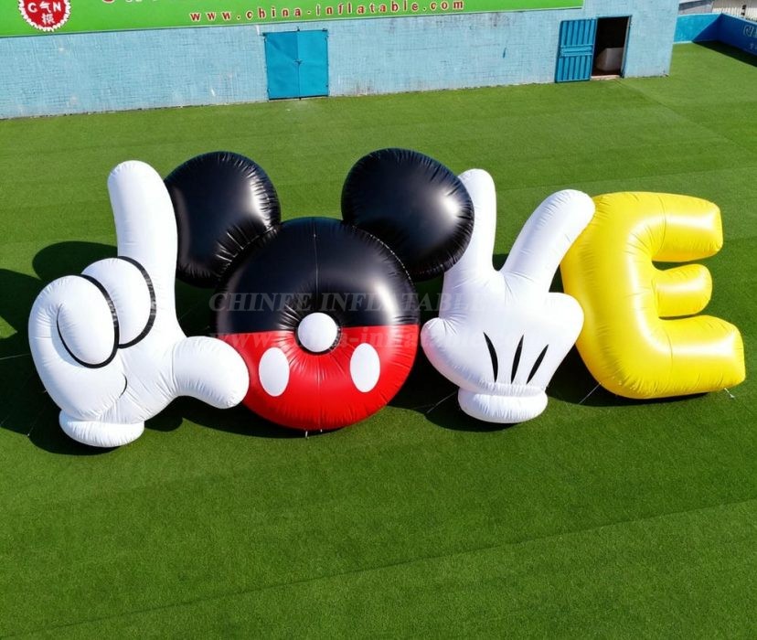 Transform your special celebration with the Cartoon3-016 Mickey Mouse Love Letters Inflatable Model Product from Chinee Inflatables Inc. This enchanting decorative set features oversized inflatable letters spelling 'LOVE' with charming Mickey Mouse theming that brings Disney magic to any event.