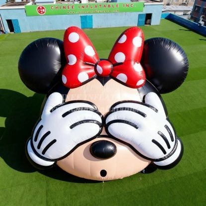 Bring the magic of Disney to your next event with this adorable Cartoon3-017 Minnie Mouse Inflatable Cartoon! This giant inflatable features Minnie's iconic design with her signature black round ears, charming red polka dot bow, and sweet expression with her white gloves playfully covering her eyes in a peek-a-boo pose.