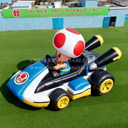 Rev up the excitement with our spectacular Cartoon3-035 Super Mario Toad Kart Inflatable Model Product from Chinee Inflatables Inc.! This incredible life-sized inflatable recreation brings the beloved world of Mario Kart directly to your event, featuring the iconic Toad character in his signature red-spotted mushroom cap behind the wheel of his racing kart.