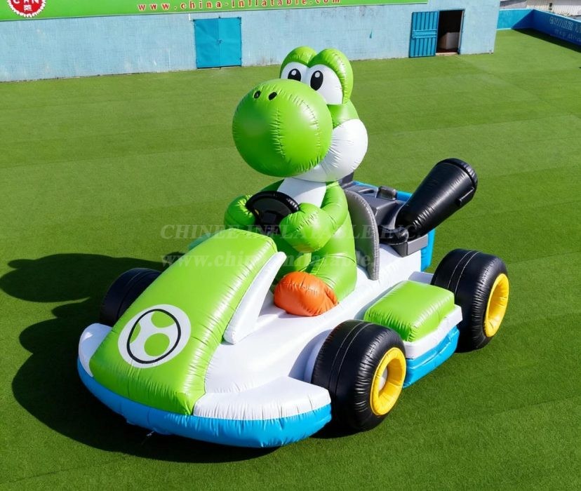 Rev up the fun with our spectacular Cartoon3-057 Yoshi Go-Kart Inflatable Model Product! This eye-catching inflatable features everyone's favorite green dinosaur from the Super Mario universe, perfectly positioned in his iconic racing kart. Standing tall and proud on our premium artificial turf display area, this impressive inflatable captures Yoshi's cheerful personality with his bright green coloring, distinctive saddle, and that unmistakable friendly smile that has won hearts worldwide.