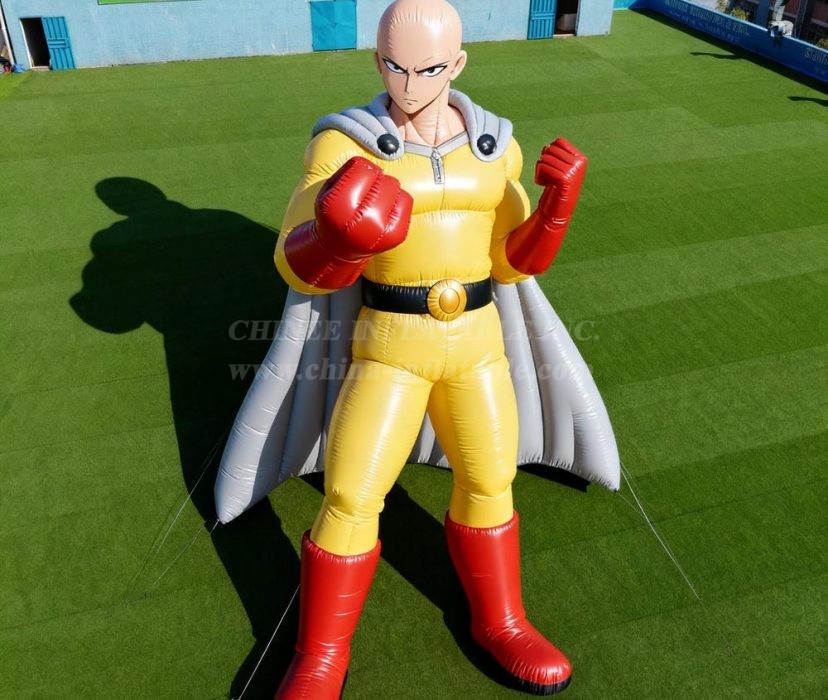 Transform your event into an epic anime adventure with this incredible Cartoon3-142 One Punch Man Saitama Inflatable Model Product from Chinee Inflatables Inc.! Standing tall and commanding attention, this meticulously crafted inflatable replica captures every detail of the beloved anime hero Saitama in his iconic yellow suit, white cape, and signature red gloves and boots.