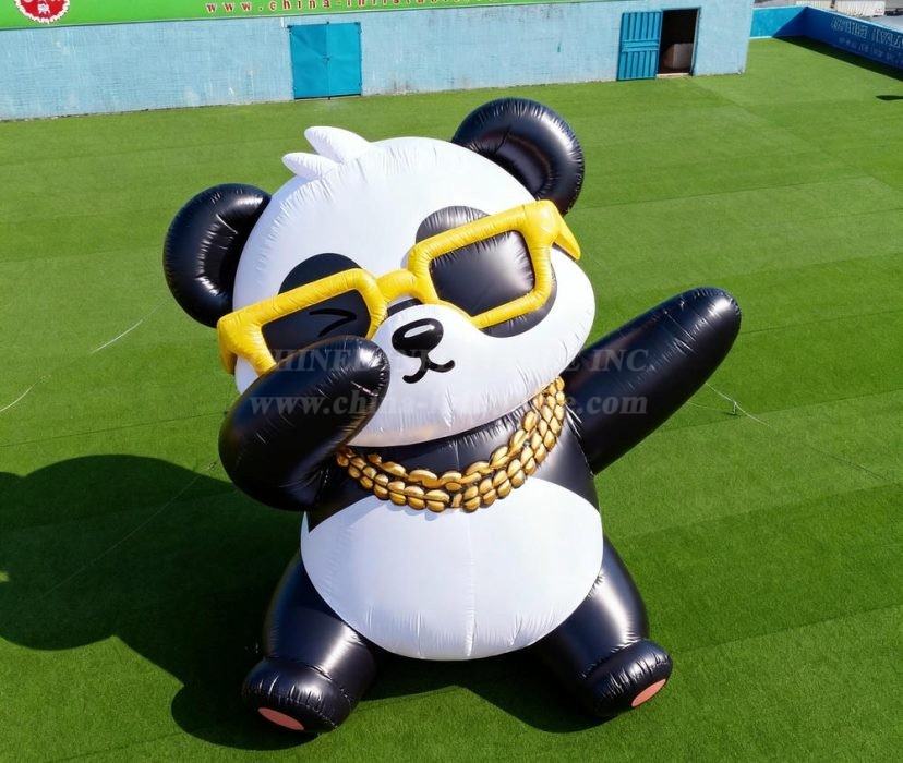 Featuring an adorable panda design complete with trendy yellow sunglasses and a luxurious gold chain necklace, this inflatable model exudes personality and style. The high-quality construction showcases vibrant black and white coloring with premium attention to detail that makes this panda truly stand out from the crowd.