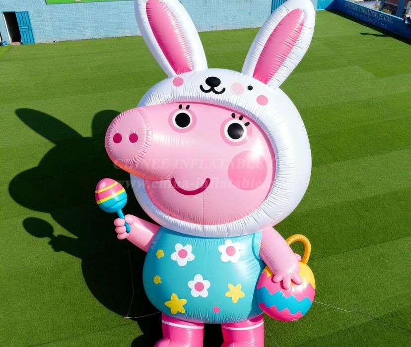 Bring joy and excitement to your Easter celebration with this adorable Cartoon3-158 Peppa Pig Easter Bunny Inflatable Cartoon from Chinee Inflatables Inc. This delightful inflatable features everyone's favorite pink pig dressed in an enchanting white bunny costume, complete with fluffy bunny ears and holding colorful Easter eggs.
