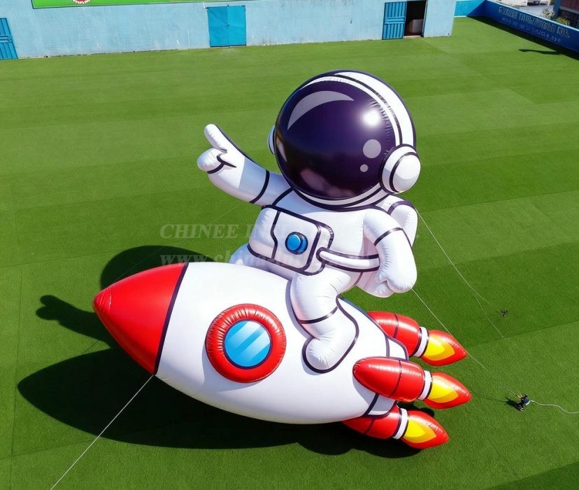 Blast off into adventure with the Cartoon3-219 Astronaut Rocket Inflatable Model Product from Chinee Inflatables Inc.! This spectacular space-themed inflatable features a cheerful astronaut character riding atop a sleek white rocket ship with vibrant red nose cone and blazing flame thrusters. Perfect for space-themed events, science museums, educational programs, or promotional campaigns that need an out-of-this-world attraction.