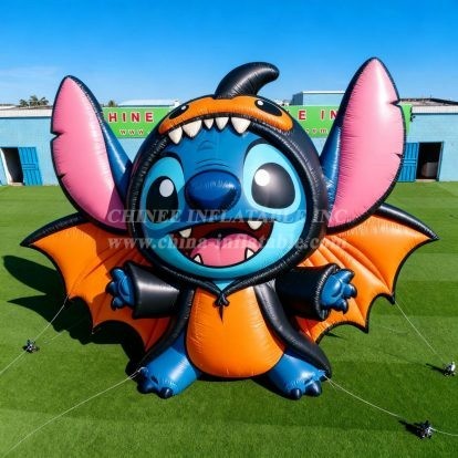 Manufactured by Chinee Inflatables Inc., this premium inflatable cartoon character showcases exceptional craftsmanship with vivid colors that pop - from Stitch's iconic blue fur and oversized pink ears to the striking orange and black bat costume details. The character's infectious smile and playful expression capture Stitch's mischievous personality perfectly, making it an instant crowd favorite at any Halloween celebration.