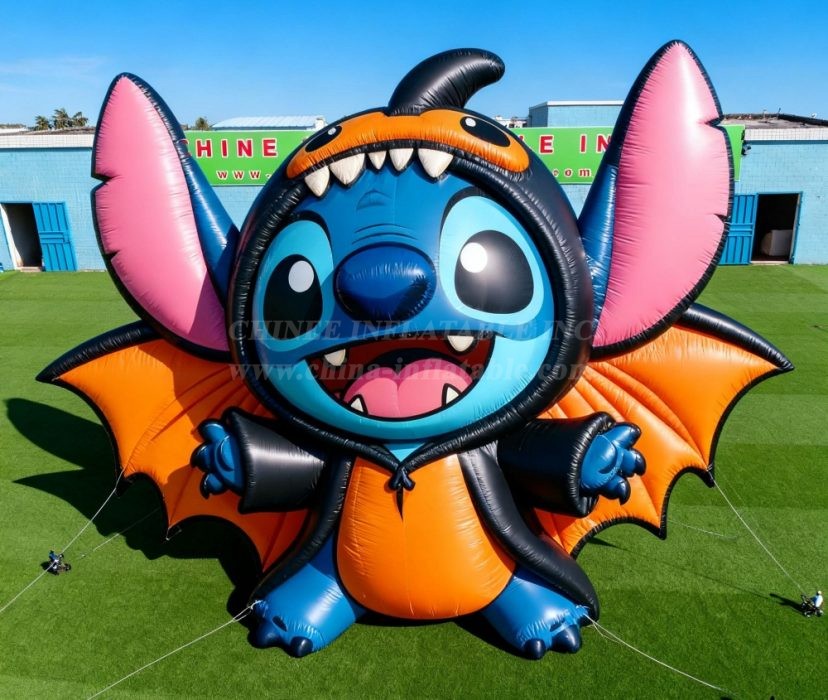 Manufactured by Chinee Inflatables Inc., this premium inflatable cartoon character showcases exceptional craftsmanship with vivid colors that pop - from Stitch's iconic blue fur and oversized pink ears to the striking orange and black bat costume details. The character's infectious smile and playful expression capture Stitch's mischievous personality perfectly, making it an instant crowd favorite at any Halloween celebration.