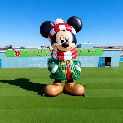 Transform your holiday celebrations with this spectacular Mickey Mouse Christmas inflatable model from Chinee Inflatables Inc. Standing as an impressive festive centerpiece, this premium inflatable features the beloved Disney icon dressed in his cheerful holiday attire, complete with a traditional Santa hat trimmed with red and white stripes, a cozy green winter coat adorned with golden buttons, and a classic red and white striped scarf.