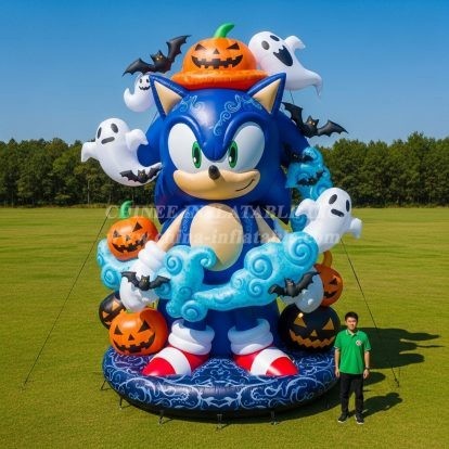 Bring high‐impact excitement to your next seasonal event with the Cartoon3-268 Sonic Halloween Inflatable Cartoon from Chinee Inflatables Inc. This towering display features a bold, blue hedgehog character surrounded by smiling jack‑o’‑lanterns, playful ghosts, and bats, creating an instant Halloween focal point that draws crowds from a distance. Designed as a decoration piece (not for bouncing or sliding), it’s ideal for theme parks, city squares, school festivals, brand activations, and outdoor trick‑or‑treat gatherings.