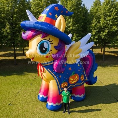 Bring instant magic and seasonal fun to your venue with our Cartoon3-365 Halloween Unicorn Inflatable Cartoon. This towering mascot-style display features a friendly winged unicorn dressed in a starry wizard hat and a cape decorated with cheerful jack-o’-lanterns—perfect for fall festivals, community events, school fairs, and outdoor promotions. Designed as a decorative showpiece (not a bouncer or slide), it delivers high visual impact that draws crowds and photo moments from every angle.