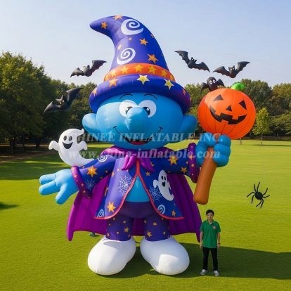 Bring spellbinding fun to your event with the Cartoon3-371 Halloween Wizard Inflatable Cartoons from Chinee Inflatables. This towering, blue wizard character holds a jack-o’-lantern staff and is dressed in a starry robe and hat, surrounded by playful Halloween elements like ghosts, bats, and spiders. Designed purely for decoration and visual impact, this inflatable is ideal for theme parks, shopping malls, school festivals, community fairs, and haunted attractions that want a high-visibility seasonal landmark.