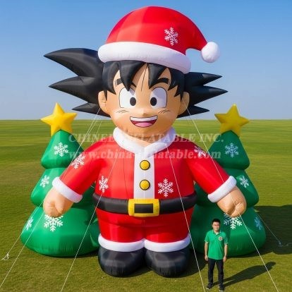 Bring instant holiday magic to your venue with this towering anime-themed Santa character from Chinee Inflatables. Designed as a decorative showpiece, this Inflatable Cartoons model features an iconic spiky-haired hero styled in a bright red Santa suit, complete with snowflake accents and belt detailing. Flanked by festive trees topped with stars, it creates a cheerful photo backdrop that draws crowds from a distance and delights fans of Japanese anime and seasonal attractions alike.