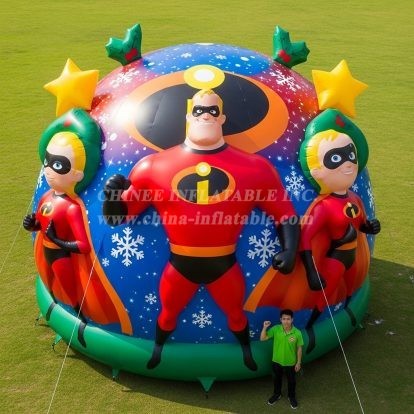 Bring superhero sparkle to your holiday events with the Cartoon3-681 The Incredibles Christmas Snow Globe Event Party Decoration from Chinee Inflatables. This eye‑catching dome features bold, 3D superhero figures around a festive globe printed with snowflakes, stars, and holly details—perfect for creating an instant photo hotspot and a powerful visual focal point. Designed as a decoration-only inflatable, it delivers maximum curb appeal without the footprint of a ride or game.