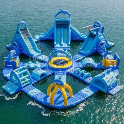 Make waves with the S345 Dolphin Theme Water Park from Chinee Inflatables Inc., the perfect centrepiece for lakes, seaside resorts, and adventure camps. This modular floating park combines towering climbs, multiple slides, balance beams, crawl tunnels, and a central play hub to create a thrilling all‑in‑one attraction. The friendly dolphin graphics and ocean‑blue palette deliver an inviting look that appeals to families and groups while standing out on the water. Built from commercial‑grade PVC tarpaulin with reinforced, heat‑sealed seams, S345 is engineered for heavy daily use and easy maintenance. Stainless D‑rings, anchor points, and safety handles are positioned throughout to ensure stable mooring and secure transitions between elements. Non‑slip textures on climb sections and platforms add confidence for users of different ages and skill levels. The layout encourages continuous flow: guests can climb the walls, conquer rope and step obstacles, sprint across balance runs, and finish with splashy slides back into the water. The modular design allows you to scale capacity, reconfigure the routes, or expand later with compatible sections to keep your venue fresh season after season. Backed by Chinee Inflatables’ 20+ years of manufacturing expertise, global export experience, and responsive service, S345 arrives with professional setup guidance and repair kits for long‑term reliability. Ideal for ticketed operations, camps, and waterfront rentals, this eye‑catching dolphin park turns open water into a profitable attraction. Company: Chinee Inflatables Inc. (est. 1998), Guangzhou, Dongsha Economic & High‑tech Zone. Website: www.china-inflatable.com. Email: [email protected].