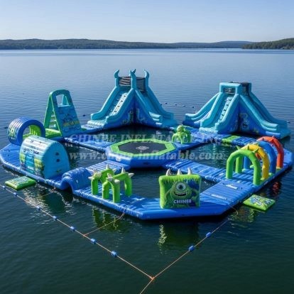 Turn your lake or seaside venue into a headline attraction with the S392 Monster Theme Water Park from Chinee Inflatables Inc. This modular floating playground blends bold monster styling with a vibrant ocean palette to deliver a high‑capacity, action‑packed experience. Multiple towers with integrated climbing lanes lead to wide splash slides, while balance beams, soft obstacles, and arched gateways connect the circuits. At the center sits a jump zone that adds extra bounce and energy, keeping guests circulating smoothly around the course.