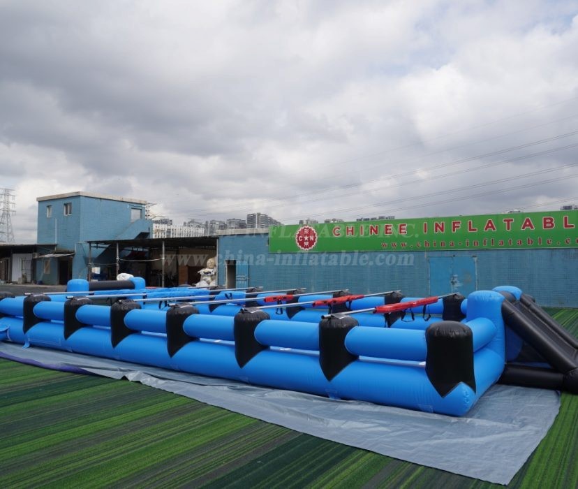 Chinee Inflatable is proud to offer the Football Shoot Out, a sport-style water activity with a World Cup theme. This large inflatable water game measures 12 meters in length, 6 meters in width, and 1.2 meters in height, but custom sizes are also available. This product is perfect for rental businesses or adult inflatable parties, and is made from high-quality materials to ensure durability.