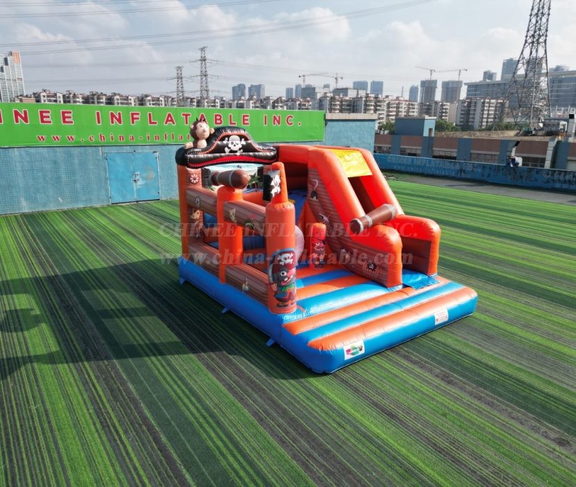 Why this is treasure for your rental inventory: 🏴‍☠️ A Proven Best-Seller: The pirate theme is an action-packed classic that is always in high demand for birthday parties, school functions, and community events. 💰 Maximum Play Value: As a combo unit, it offers multiple activities (bouncing, obstacles, climbing, sliding) in one footprint, allowing you to charge a premium rental rate. 🎨 Incredible Curb Appeal: The bright orange and blue colors, combined with the 3D pirate hat and flag, make this a stunning centerpiece that will attract attention from afar. ⚓ Built for Battle (and Play!): As a direct-from-the-factory Chinee Inflatables product, this unit is built with heavy-duty, lead-safe, commercial-grade PVC. With expert, reinforced stitching and safety features throughout, it’s designed to withstand years of profitable voyages.