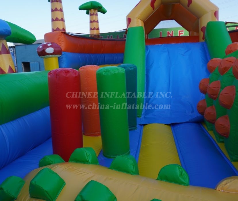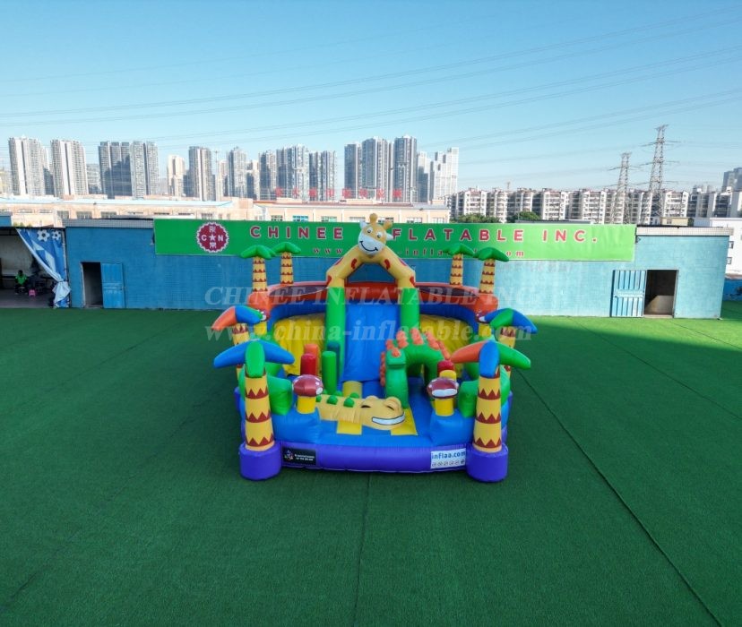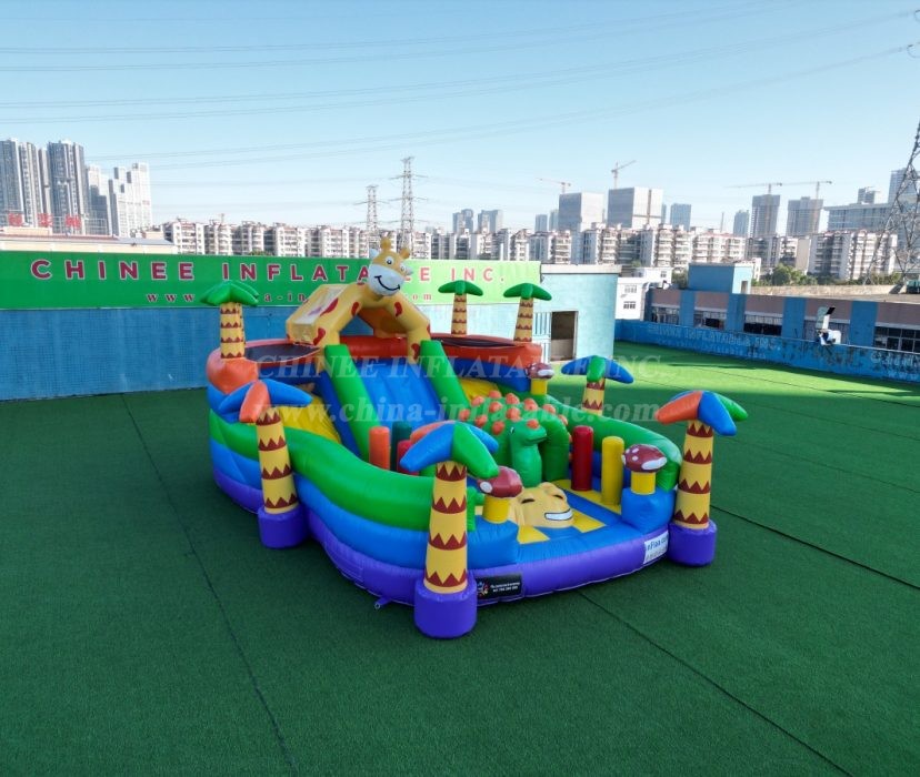 An Investment in Profitability & Durability: 🌴 Multi-Feature Design (5-in-1): This is more than just a bounce house. This combo unit maximizes play value and your rental price, featuring a spacious jumping area, a climb-and-slide element, and interior pop-up obstacles for endless engagement. 🦒 Timeless & Popular Theme: The bright colors and friendly jungle animal characters are a hit at any event, making this a highly requested piece with broad appeal. 💪 Built for the Rental Industry: Manufactured with premium, commercial-grade 18oz PVC tarpaulin. All high-stress areas, including bouncing surfaces and slide seams, are reinforced with extra stitching to ensure a long, profitable service life. 🛡️ Safety is Paramount: Features include finger-safe mesh netting on all walls for clear supervision, a covered slide top for safety, and a wide entrance ramp. Our products are designed to meet and exceed global safety standards. 🏭 Factory-Direct Quality: Purchase directly from a trusted manufacturer with over 20 years of experience. Chinee Inflatables delivers superior products that are built to last, providing an excellent return on your investment.