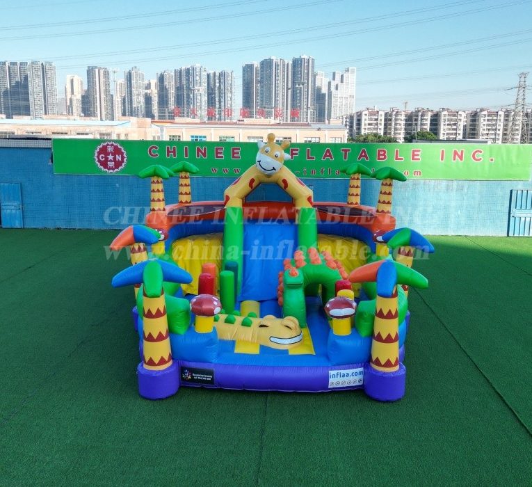 An Investment in Profitability & Durability: 🌴 Multi-Feature Design (5-in-1): This is more than just a bounce house. This combo unit maximizes play value and your rental price, featuring a spacious jumping area, a climb-and-slide element, and interior pop-up obstacles for endless engagement. 🦒 Timeless & Popular Theme: The bright colors and friendly jungle animal characters are a hit at any event, making this a highly requested piece with broad appeal. 💪 Built for the Rental Industry: Manufactured with premium, commercial-grade 18oz PVC tarpaulin. All high-stress areas, including bouncing surfaces and slide seams, are reinforced with extra stitching to ensure a long, profitable service life. 🛡️ Safety is Paramount: Features include finger-safe mesh netting on all walls for clear supervision, a covered slide top for safety, and a wide entrance ramp. Our products are designed to meet and exceed global safety standards. 🏭 Factory-Direct Quality: Purchase directly from a trusted manufacturer with over 20 years of experience. Chinee Inflatables delivers superior products that are built to last, providing an excellent return on your investment.