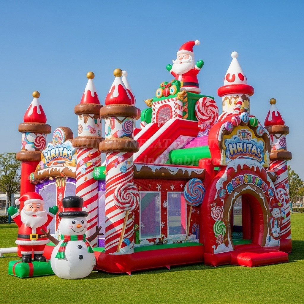 Bring the magic of the holidays to your event with the T2-8612 Christmas Theme Inflatable Combo from Chinee Inflatables. This festive unit blends a vibrant bouncing hall with an integrated slide, all wrapped in a gingerbread‑house style facade featuring candy canes, lollipops, and cheerful Christmas graphics. A friendly Santa and snowman welcome guests at the entrance, creating an irresistible photo spot and a joyful first impression for kids and families alike.