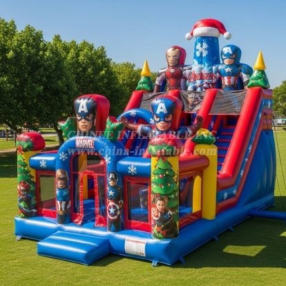 Unleash heroic fun with the T2-8646 The Avengers Inflatable Combos from Chinee Inflatables Inc., China’s leading inflatable manufacturer since 1998. This action-packed unit blends a spacious bounce area with an integrated climb-and-slide, wrapped in vivid Marvel Avengers artwork and festive holiday details. Iconic superhero elements and cheerful Christmas accents like snowflakes and holiday trees create a standout centerpiece for events year-round, from winter festivals to superhero-themed parties.