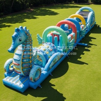 T7-3991 Seahorse Theme Inflatable Obstacle Course