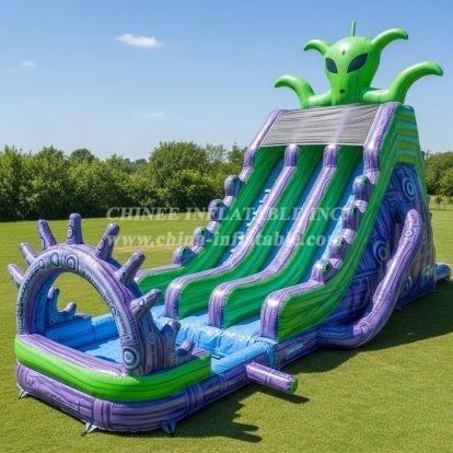 ここにいます: ホーム / インフレータブルウォータースライド / T8-5437 Alien Theme Inflatable Water Slide