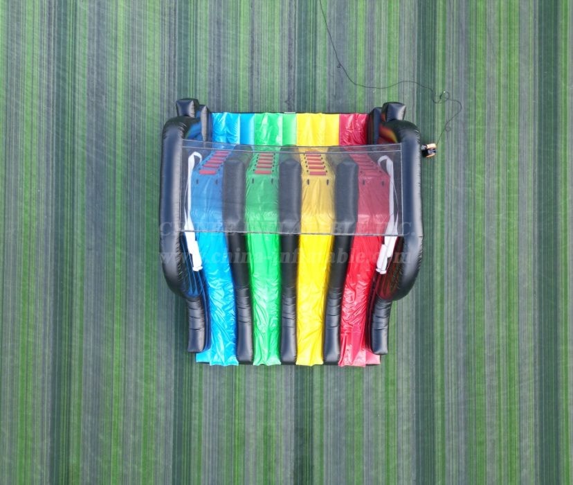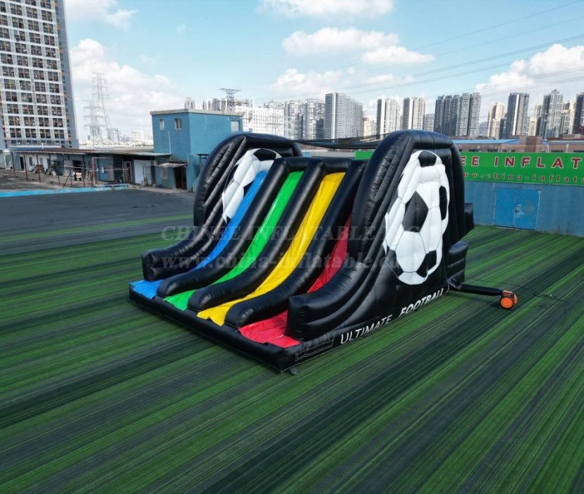 This slide is an absolute showstopper, designed to handle crowds and keep the excitement level at its peak. Four riders can race simultaneously down the vibrant, colorful lanes, making it the perfect centerpiece for any large event. The bold black structure combined with the giant soccer ball details creates a visually stunning attraction for all sports fans.