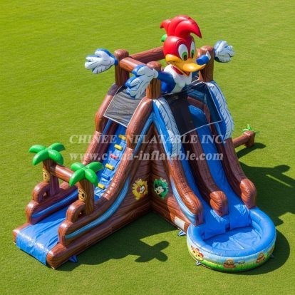 T8-7614 Woody Woodpecker Theme Inflatable Water Slide