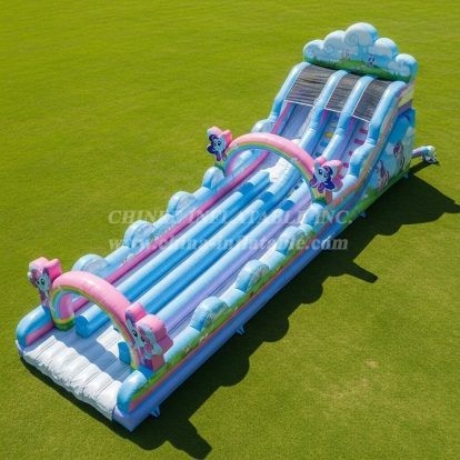 Bring magical adventures to your events with the T8-8808 My Little Pony Inflatable Slide. Featuring vibrant pastel colors, enchanting pony characters, and playful rainbow arches, this slide will thrill kids with hours of fun. Crafted with high-quality materials by Chinee Inflatables Inc., it ensures safety, durability, and eye-catching appeal for parties, fairs, and outdoor entertainment. Perfect for creating unforgettable memories while delivering top-tier inflatable performance.