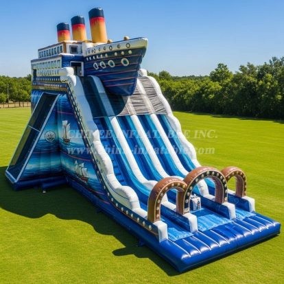 Experience the thrill of history with the T8-8927 Titanic Inflatable Dry Slide from Chinee Inflatables. This stunning slide features a detailed ship design, vibrant ocean graphics, and multiple sliding lanes for endless fun. Built with high-quality materials and expert craftsmanship, it’s perfect for events, festivals, and outdoor entertainment. Let your guests enjoy a unique adventure as they slide down this impressive Titanic-themed inflatable.