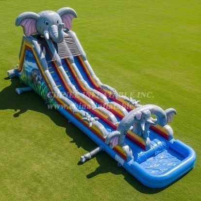 Bring the thrill of the wild to your event with the T8-8984 Elephant Inflatable Slide from Chinee Inflatables. Featuring a towering elephant design with vivid jungle artwork, this slide offers double lanes for maximum fun and excitement. Perfect for festivals, school events, or theme parks, it provides safe, durable, and eye-catching entertainment that kids and adults alike will enjoy. Built with high-quality materials, it’s ready for endless adventures.