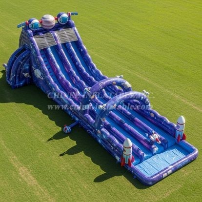 Experience an out-of-this-world adventure with the T8-8998 Space Inflatable Slide from Chinee Inflatables. Designed with vivid cosmic graphics, rockets, and planets, this giant slide offers thrilling rides for kids and adults alike. Perfect for outdoor events, its durable construction ensures safe play and lasting fun. Let your guests blast off into excitement with this visually stunning, high-quality inflatable attraction built for both entertainment and impact.