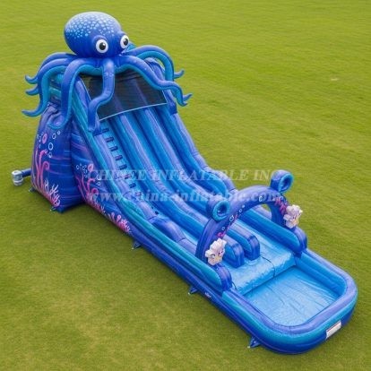 Dive into seaside excitement with this octopus-themed inflatable water slide. Featuring vibrant ocean graphics, a towering octopus entrance, and a safe splash pool, it delivers high-impact fun for kids and events. Built from heavy-duty PVC with reinforced seams and easy setup, it's perfect for summer parties, parks, or rental businesses seeking a visually striking, durable attraction.