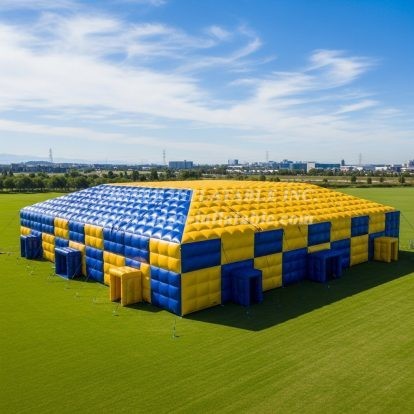 The Tent1-6567 Inflatable Cube Tent from Chinee Inflatables Inc. is a versatile, large-scale structure perfect for events, exhibitions, and gatherings. Its striking blue and yellow block design offers high visibility, while durable materials ensure stability and weather resistance. Quick to set up and dismantle, this spacious inflatable cube tent is ideal for creating an impressive sheltered area, combining functionality with eye-catching style for both outdoor and indoor use.